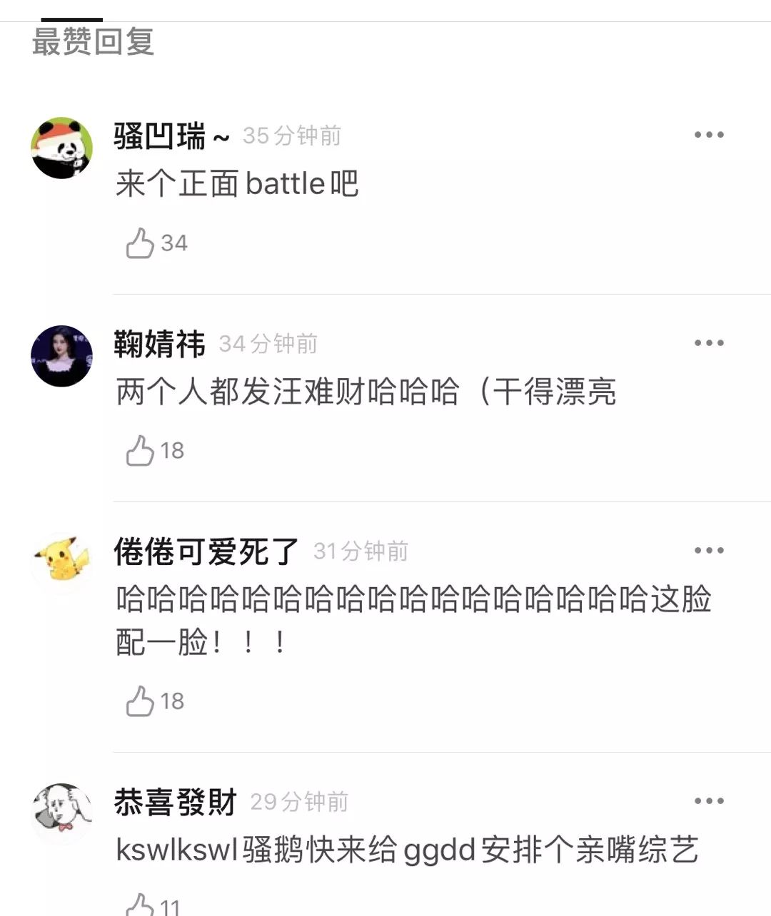 业内的人也发现了这几个人骚气,所以有的微博大V的文案就特意给俩人来了个同框。