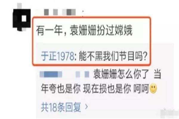 后脚于妈就跟上:袁姗姗那么丑,能不要黑我们节目吗?