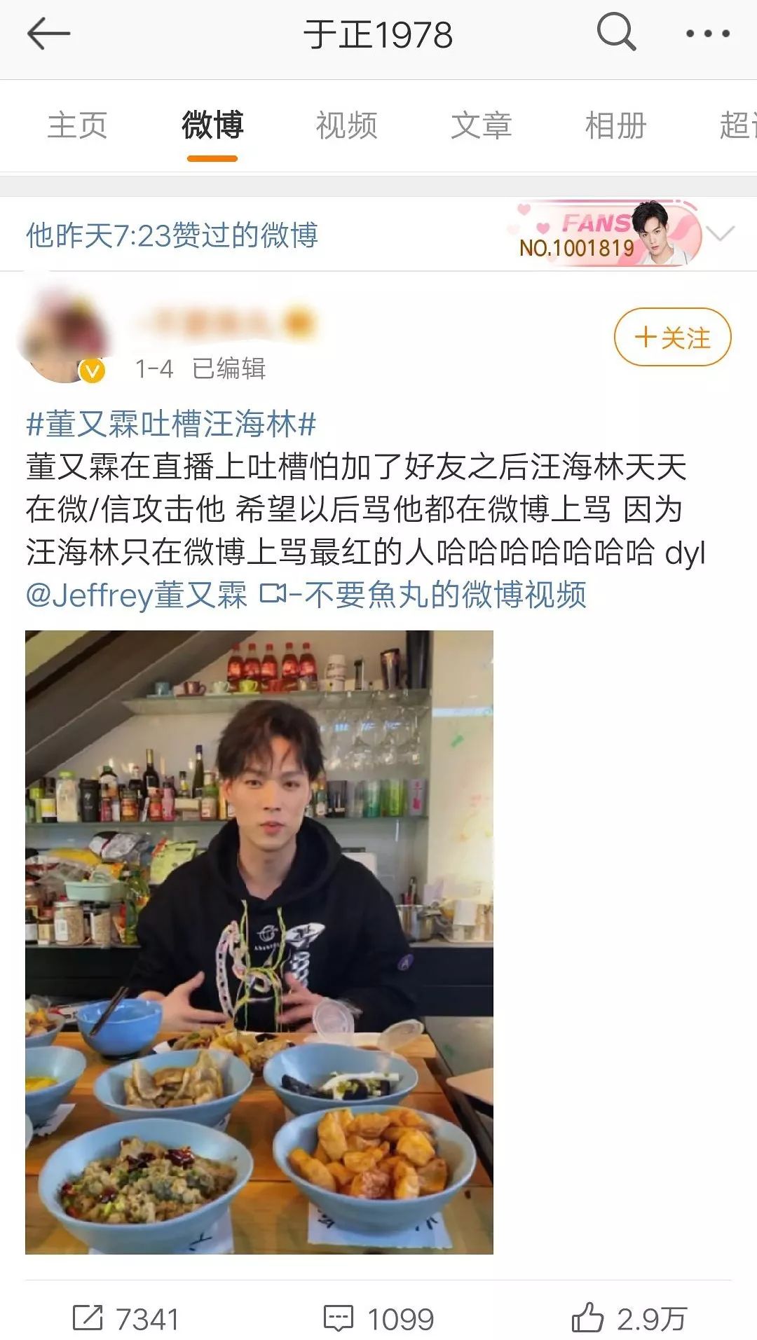 这个“人”,找的就是董又霖。董又霖前几天在直播上吐槽了说自己怕加了汪海林天天在微信上攻击他,还是希望汪海林能到微博上光明正大的骂,因为汪海林只骂最红的人!