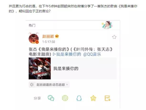 而且,于正发完这条微博后,广告博主赵丽颖亲自上线,转发了好友谢娜老公张杰的一首新歌《我是来揍你的》!