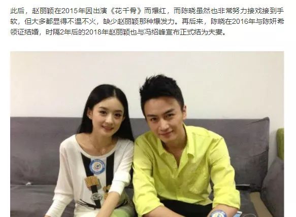 好嘛!娱乐圈说大不大说小不小,总共那么点地方,大家往回一找,陈晓和赵丽颖几乎条条都能对的上。