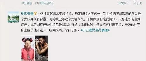 这条娱乐新闻,就被于正点赞了。不得不说,汪大编剧虽然撕逼厉害,可对于微博营销还是不如于妈厉害啊!