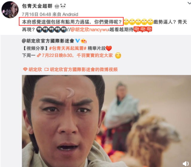 《包青天再起风云》就更尴尬了,谭俊彦饰演的包青天直接被金超群老师吐槽用力过猛。
