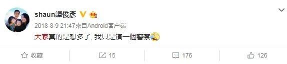 在谭俊彦拍《法证4》前还有个小插曲,这部剧开拍前媒体都在传他将饰演男主,结果网友群情激奋,纷纷表示谭俊彦又要毁剧了,无奈的谭俊彦只好发微博“安抚”大家,表示自己只是演个警察而非男一。