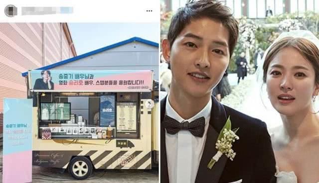 在片场还有一辆专门为宋仲基与《胜利号》剧组打造的餐车,也是挂满了宋仲基的照片,为他加油打气。据餐车工作人员表示,宋仲基总是在片场以笑脸示人,拿咖啡的时候也是亲和有礼,显然离婚的阴影已经消失不见。