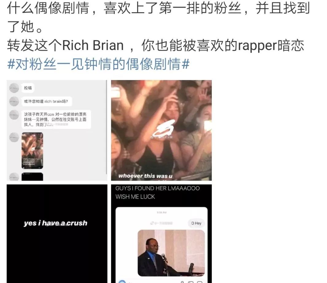 先是昨天有人投稿,印度尼西亚歌手Rich Brian 在社交软件上发文说对自己演出时第一排的一个女孩子一见钟情。