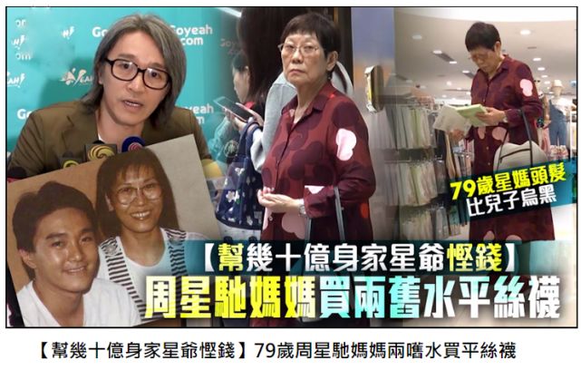 原标题:周星驰79岁妈妈独自逛店,容光焕发气色好,买优惠丝袜很