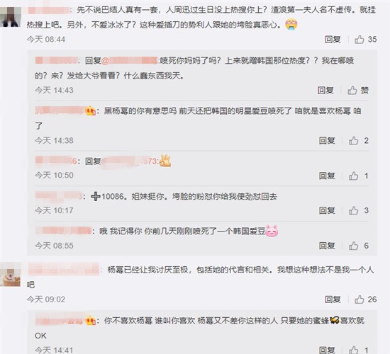 本身杨幂确实是时下正当红的流量明星,为周迅庆生也是因为俩人本身之前就合作过。再说,周迅是比较低调,但是不管怎么说“杨幂为周迅庆生”能有关注度正常。有人却哟揪着杨幂不放:先不说巴结人真有一套,人周迅过生日没上热搜你上?就挂热搜上吧。另外,不爱冰冰了?这种爱插刀的势利人跟她的垮脸真恶心。这样的话是狠了点,虽然有传杨幂曾经离间过赵薇和周迅的关系,这样传说真有点离谱了。怎么说赵薇和周迅都比杨幂大,这么大的人能被杨幂离间的话脑子怕不是有问题吧?再说了就算是当年杨幂对周迅做过点什么,周迅都没说话,还可以这么亲密的拍照,周迅莫不是个傻子?