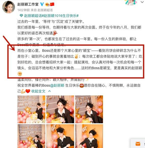原标题:赵丽颖32岁生日现场图曝光,工作室表扬赵老板的5个优点让人