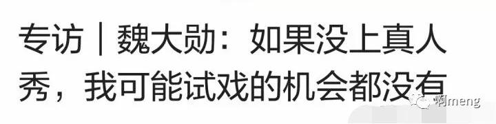 回想一下魏大勋的代表作,嗯?怎么脑海里跳出的还是各种综艺节目啊。但魏大勋对自己的认识还挺清醒:“如果不上真人秀,我可能连试戏的机会都没有。”