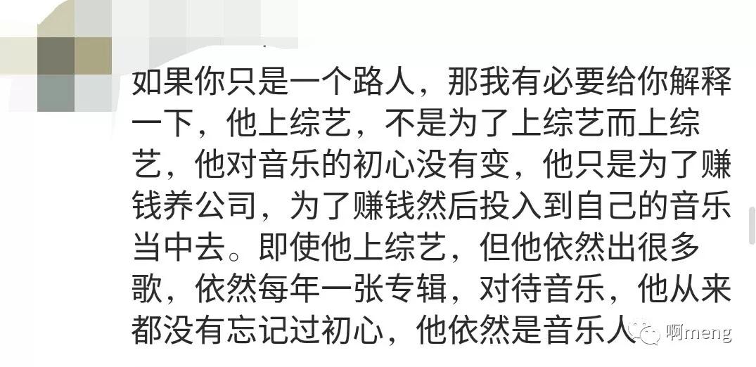 QQ音乐三巨头这个称号,是他成名的见证。可是这个称号在现在却一直困扰着他。因为这个称号,人们认定他就只是个网络歌手,他的歌曲无法登上大雅之堂。他在不断地突破自己,创作更多更好的歌曲,可是人们的成见忽视了他的音乐本身,自然而然地将他的歌排斥在外。