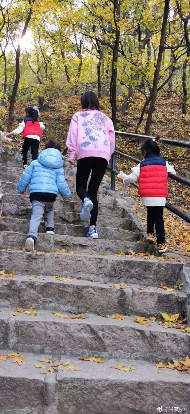 11月8日,甘薇在微博上晒出与孩子们一同爬山的照片,并感慨配文称:“孩子们,要相信,这个世界里美好总要多过阴暗,欢乐总要多过苦难,还有很多事,值得你一如既往的相信。你的努力和坚持一定会有回报的,当你在山顶那一刻,才会看到风景无限好。”
