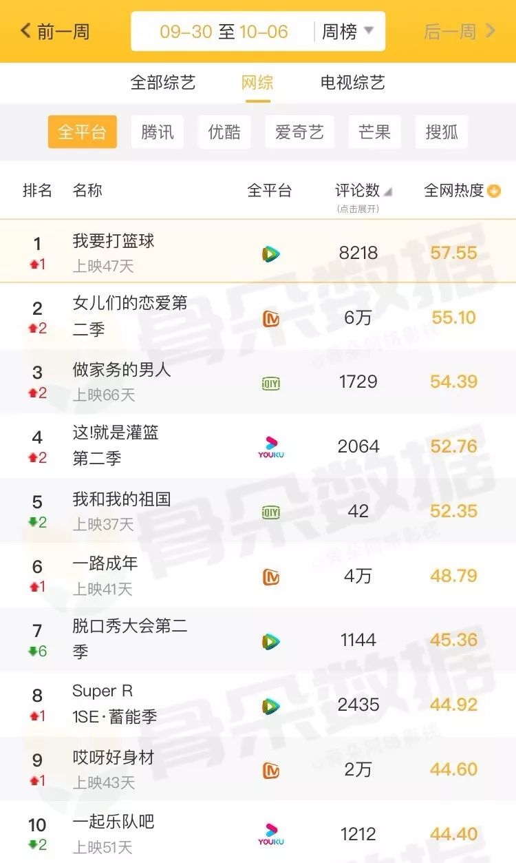以热度及评论量维度参考,《我要打篮球》《女儿们的恋爱2》《做家务的男人》《这!就是灌篮2》《一路成年》等节目相对表现较好。其中《女儿们的恋爱2》和《一路成年》的评论量较高。可以注意到,芒果TV节目评论量相对其他平台而言均较高,仅以评论量衡量网综热度并不足够科学。