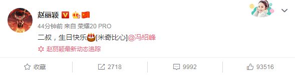 原标题:赵丽颖为41岁冯绍峰庆生,甜蜜称二叔,冯绍峰秀恩爱谢谢