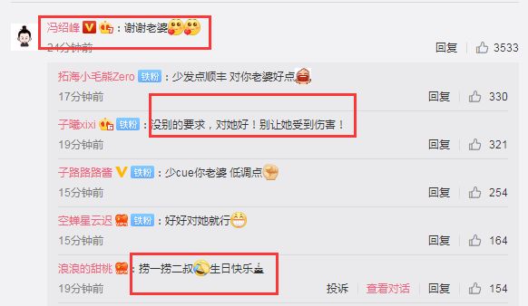 冯绍峰也赶紧回复老婆赵丽颖,在动态下面留言:谢谢老婆。俩人这是秀恩爱,撒狗粮的节奏啊。不少网友纷纷调侃,一些网友说道:“没别的要求,对她好!别让她受到伤害!”、“捞一捞二叔,生日快乐”,众网友们齐齐送祝福,叮嘱冯绍峰对自己老婆好点。