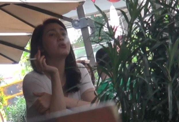 原标题:“最美花瓶”洪欣颜值下跌?素颜与友人相聚,全程吸烟不断满