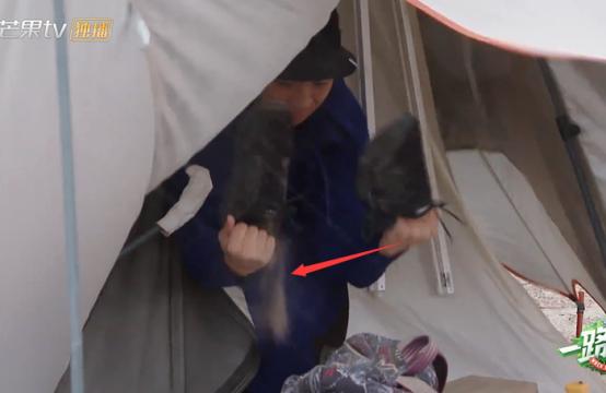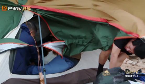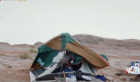 就连帐篷都被风全部吹到,嘉宾还一直再用手支撑着帐篷。