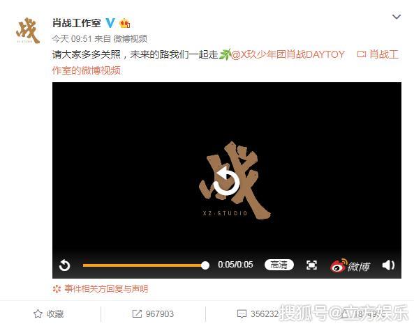 9月29日,肖战工作室官博上线,粉丝秒破百万。尽管放出的宣传短片仅有5秒,但累积收到了96万转发,187万点赞,可见其事件影响力。这一官宣其实有着非凡意义,它代表爆爆战终于脱离了龙丹妮的掌控,重回自由身。官博同时还不忘@X玖少年团,对肖战而言,其初心亦是真挚可见。
