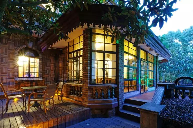 马勒别墅完工不久,太平洋战争爆发,马勒一家被迫离开这里。幸运的是,几经战乱转手,老房子依旧保存完好,而房子里承载的爱和梦想一如往昔。衡山集团接手后对其进行修缮,马勒别墅于2002年5月作为精品酒店正式对外营业。如何最大限度地展示这些历史老宅的风华,衡山选择“修旧如旧”。如果不是工作人员特意指明,从外观上你一定看不出来其中一栋建筑是仿照主楼后期建造的。马勒别墅拥有占地近两千平米的花园,站在花园中仰望这座斯堪的那维亚风格的建筑,拥有童话般的尖顶、圆窗、彩色地砖及耐火砖外墙,外观灵感源自马勒家族故土——北欧。阳光房的墙上刻着“Fairland”(仙境),这是复刻了老宅当时的雕刻。据说这是别墅刚建造完成后,当一家人第一次走进别墅,戴安娜如在梦境般地喃喃道:仙境!