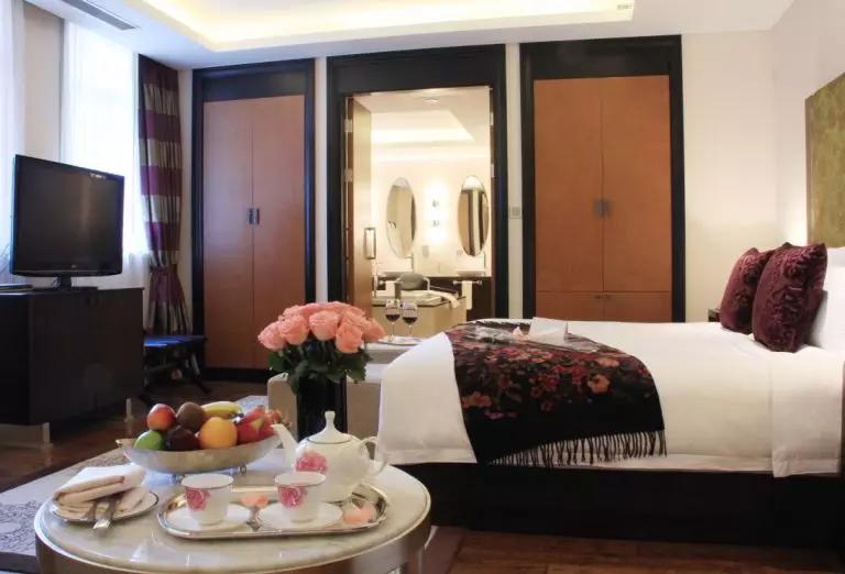 作为《玫瑰玫瑰我爱你》的起源地,酒店将玫瑰元素演绎得淋漓尽致。酒店设有103间精致客房,最具代表性的有玫瑰房、玫瑰套房等。当你走进门,便能闻到玫瑰花香,花瓶里、床单上、浴缸里娇艳欲滴的玫瑰随处可见。除了玫瑰洗护用品之外,还有玫瑰舒眠茶、玫瑰饮品,让香气跳跃至舌尖,带你踏上一场沉浸式的芳香之旅。