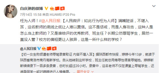 时隔几年,如今白庆林活的潇洒自如,从她的微博中可以看出她是个爱憎分明的人,对某些丑陋的现象,白庆琳都抱着一颗打抱不平的心,正义感十足。