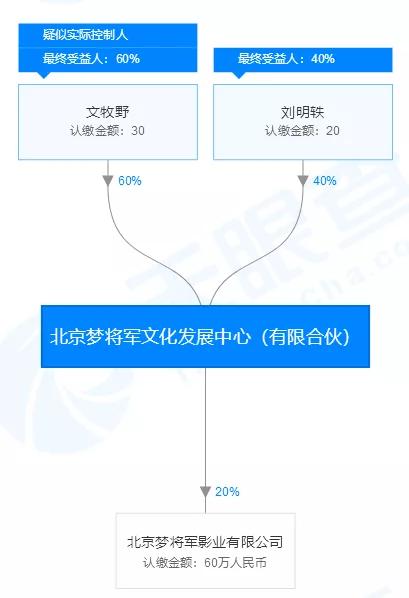 导演文牧野的公司。《我不是药神》后,文牧野与该片执行制片人刘明轶于2019年共同创立了北京梦将军文化发展中心(有限合伙),文牧野任法人。梦将军影业是其子公司,法人由刘明轶担任。