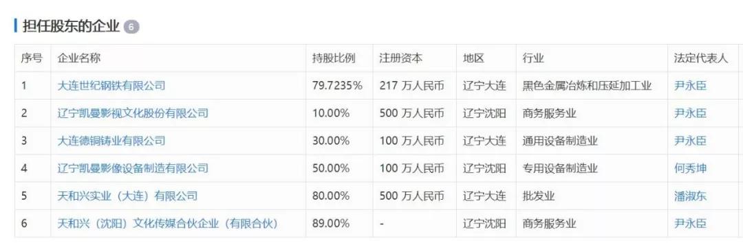 成立于2015年,曾出品过青春片《炫熠青春》,其法人和受益人尹永臣在辽宁拥有多家实业公司,如大连世纪钢铁有限公司、大连德铜铸业有限公司、辽宁凯曼影像设备制造有限公司、营口丰源机械有限公司等。