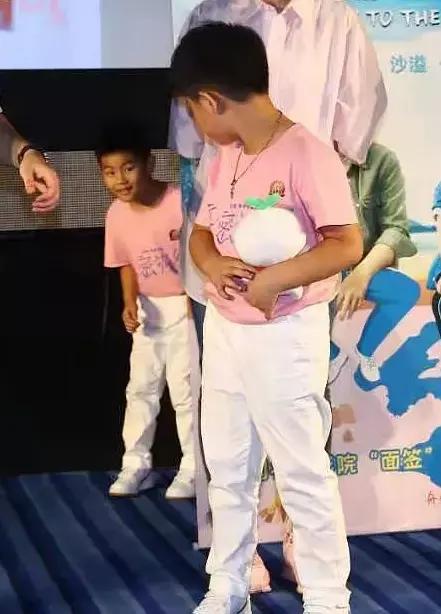 而作为弟弟的小鱼儿,可能是知道自己没有参与爸爸的电影,所以在首映现场的时候,跟安吉比起来那就是一点都不老实了。