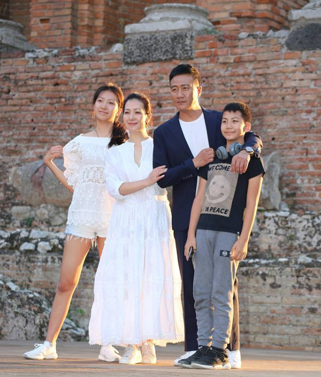 原标题:胡军一家四口同框,康康越长越像爸爸,19岁九儿身高