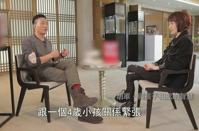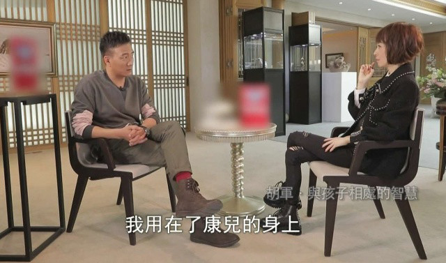 节目中胡军自曝,在康康四岁的时候,因为太调皮,把家里新买的沙发乱涂乱画。气急的胡军,本着儿子要严格教育的态度,就把小时候父亲对自己的教育方式,用在了康康身上,狠狠惩罚了他。